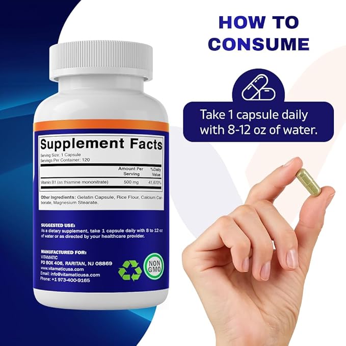Vitamatic Vitamin B1 (Thiamine) 500mg, 120 Capsules