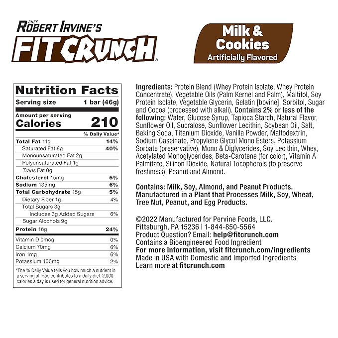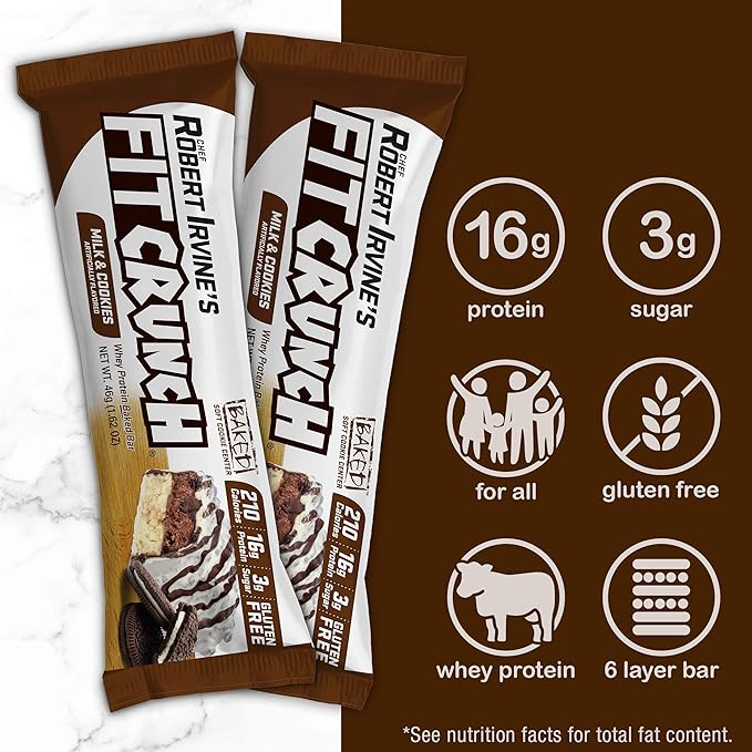 FITCRUNCH Snack Size Protein Bars, World’s Only 6-Layer Baked Bar, Just 3g of Sugar & Soft Cake Core (9 Count, Milk & Cookies)