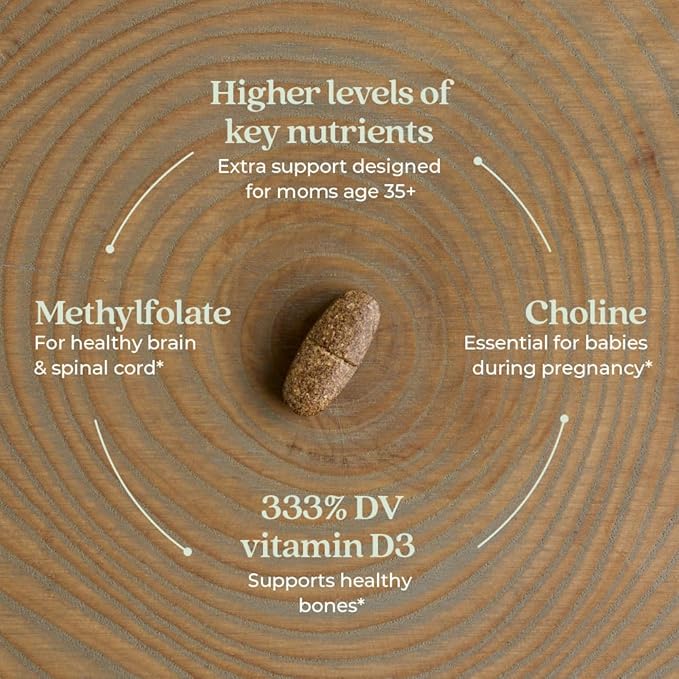 - METHYLFOLATE & CHOLINE: Expertly crafted for the needs of moms 35+, including cognitive-supporting Methylfolate (the most active form of Folate) & Choline, plus nutrients that support healthy blood sugar & healthy blood pressure*