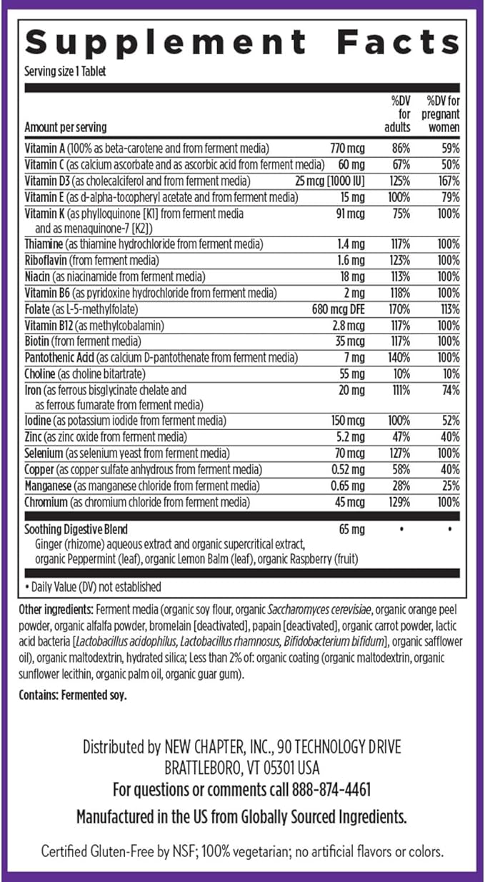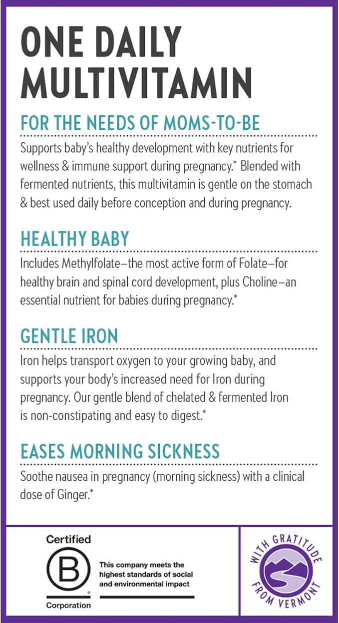 - ONE DAILY PRENATAL VITAMIN: Convenient multivitamins made with fermented nutrients your body can recognize as food