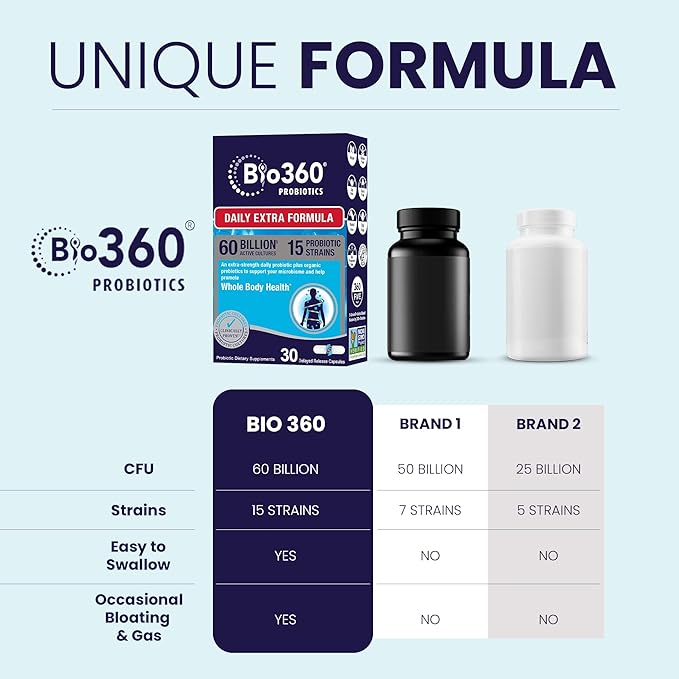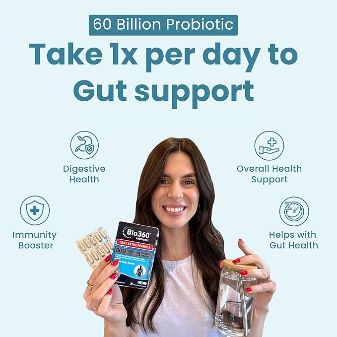 - IMMUNITY SUPPORT: Bio360 Probiotic offers essential support for your immune system, featuring clinically proven strains like Lactobacillus salivarius. A powerful probiotic like this helps promote your body's natural defenses, providing a strong barrier against harmful pathogens and promoting overall health.