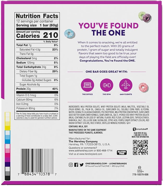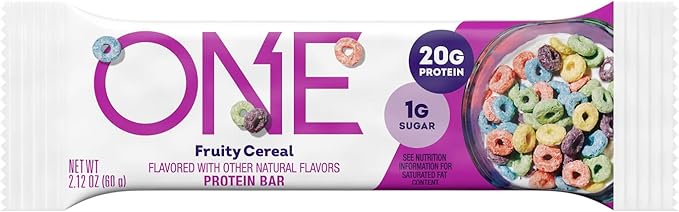 - FRUITY CEREAL PROTEIN: Enjoy a protein packed ONE fruity cereal flavored bar for breakfast or lunch or bring it with you to the office or gym, golf course, or for a pre- or post-workout snack