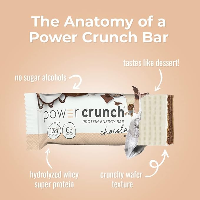 - SATISFYING CRUNCH IN EVERY BITE: Power Crunch is a unique wafer protein bar, made with a delicious crispy wafer to satisfy your cravings in every bite while giving you the energy you need! Making it a great breakfast protein bar, snack bar and on the go bite for any occasion.