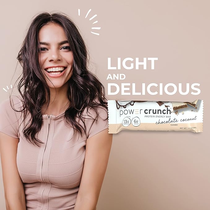 - DELICIOUS TASTING WHEY PROTEIN BARS: Power Crunch Bars are the perfect protein snacks. With 13 grams of protein and only 6 grams of sugar, these Chocolate Coconut energy bars are the ideal snacks. Great for Back to School