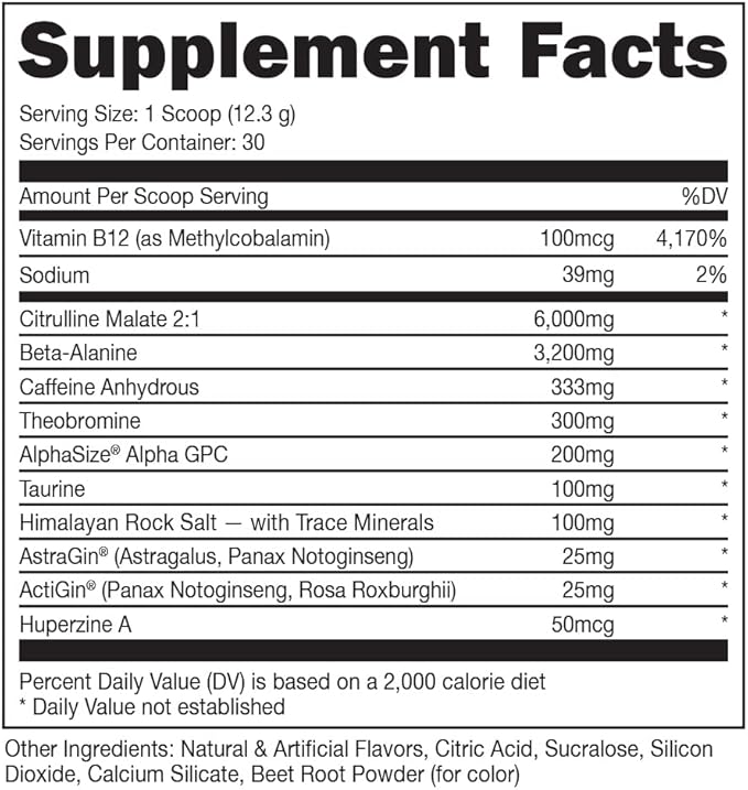 - AMAZING TASTE - Flavor like you've never had in a Pre Workout drink! Natural and Artificial Flavors with NO SUGAR or stevia. KETO FRIENDLY and fully transparent nutrition label. Supplement.- L-Citrulline (amino acid) – 6 Grams to Maximize Blood Flow (Nitric Oxide Booster)*