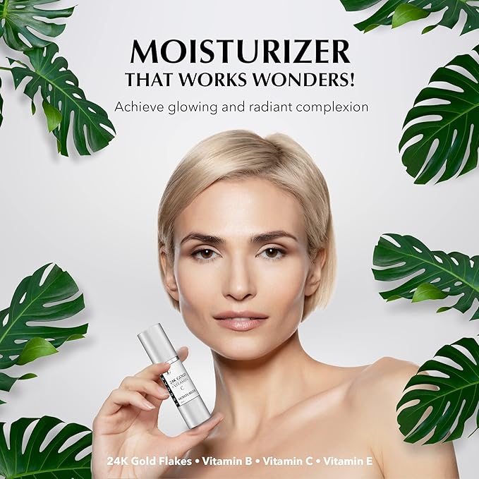 - Rich in Antioxidants - Give yourself a natural face lift with our facial moisturizer boosts your skin’s collagen production. Our 24k gold serum helps reduce wrinkles and promotes skin tightening. Enjoy a firmer, younger-looking skin with daily application.