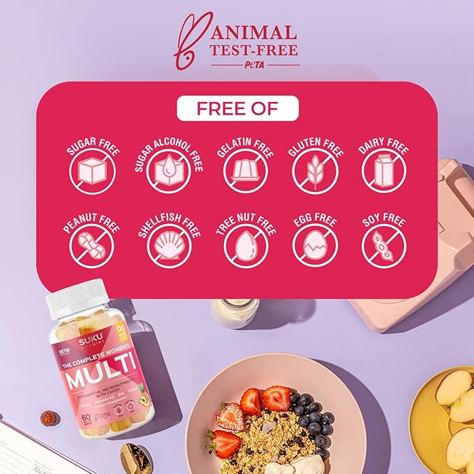 - Easy to Take Nutrients - No more drips and spills with Suku Vitamins’ women’s complete multivitamin gummies! Enjoy the goodness of our keto-friendly, vegetarian vitamins.