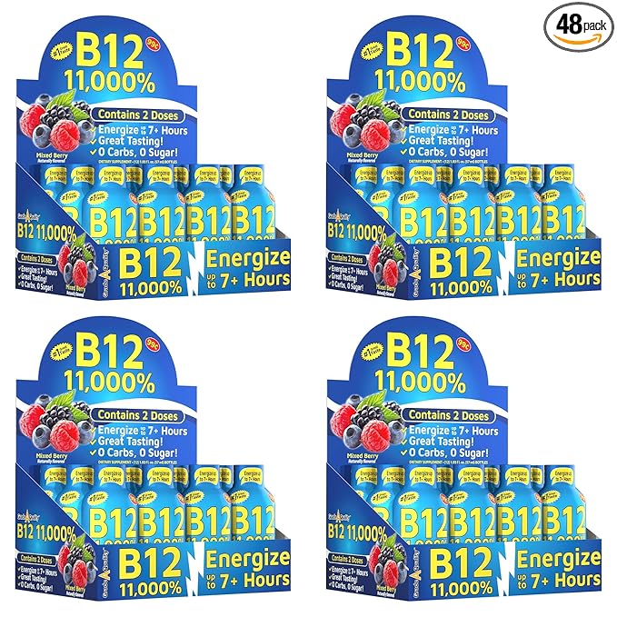 Vitamin Energy Shots, Mixed Berry Flavor, Up to 7+ Hours of Energy, 1.93 Fl Oz, 48 Count