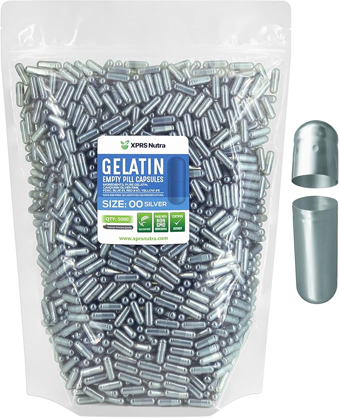 XPRS Nutra Size 00 Empty Capsules - 5000 Count Empty Gelatin Capsules - Empty Pill Capsules - DIY Capsule Filling - Fillable Pill Capsules Empty Gel Caps (Silver)