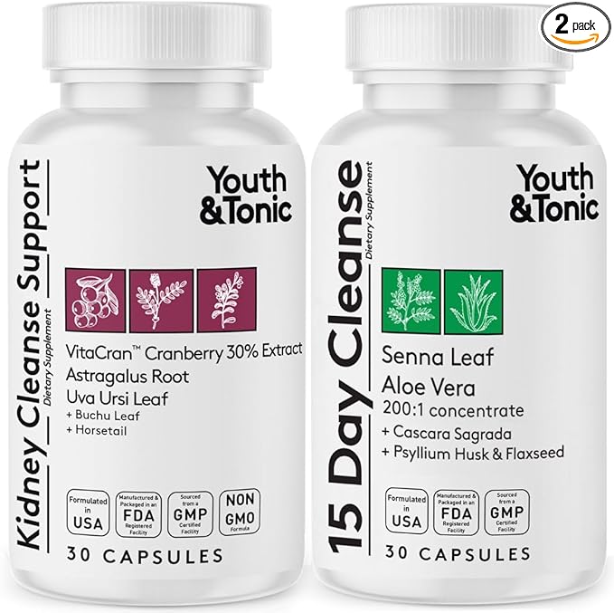 - Full Body Detox & Cleanse: This 2-pack of 15 Day Colon Cleanse and Kidney Cleanse Detox is designed to support gut health, urinary tract, and kidney function | Ideal for relieving stomach bloating, promoting natural detox, and supporting daily bowel movements, while flushing built-up waste from the colon and kidneys