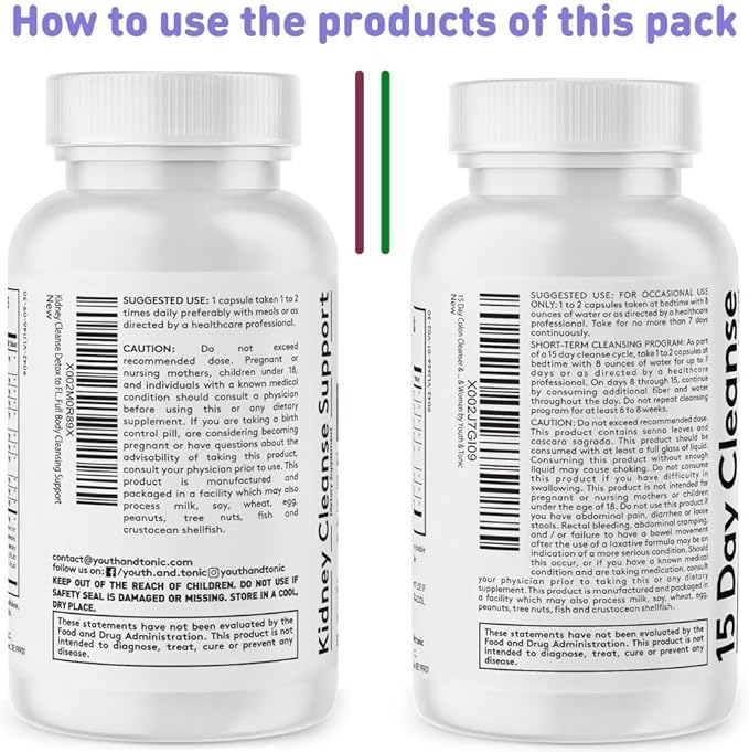 - Easy to Use: Take 1-2 capsules of 15 Day Cleanse Gut Support at bedtime for up to 15 days, and 1-2 Kidney Cleanse pills daily with meals | Ensure adequate water intake during the cleanse for optimal results | Produced in a GMP-certified facility in the USA, these supplements are made with quality ingredients for your safety and well-being