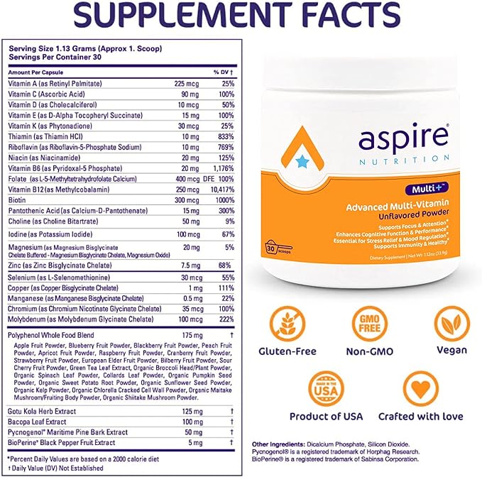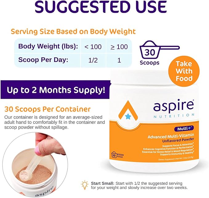 Aspire Multi+™ Advanced Multivitamin for Kids, Men & Women (unflavored Powder)