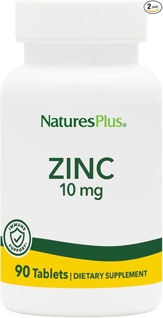 NaturesPlus Zinc 10 mg - 90 Tablets, Pack of 2 - Supports Immune Health & Overall Well-Being - High-Potency Amino Acid Chelate Form - Gluten Free, Vegetarian - 180 Total Servings