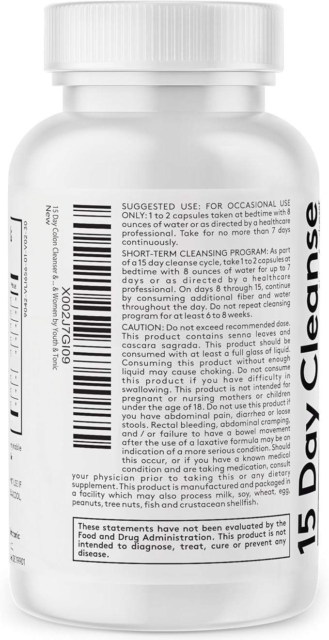 Youth & Tonic Diuretic Full Body Cleanse Detox Pills for Bloating, Puffiness and Swelling, System Flush for Colon, Kidney and Liver Detoxing, 30 Day Supply with Green Tea, Senna, Dandelion, Cranberry