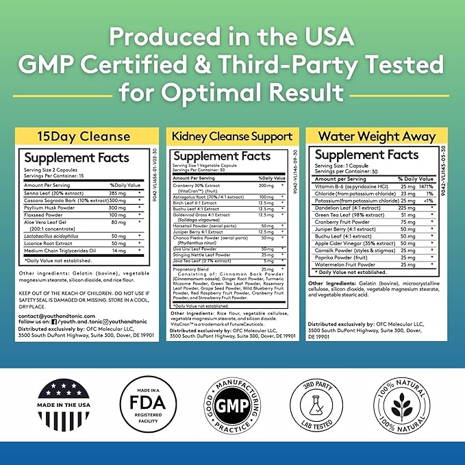 - What it does | 3 diuretic products for women or men for cleansing metabolic waste built up elements, for body fluids detox and temporrary water retention | produced in US, in an inspected facility with GMP