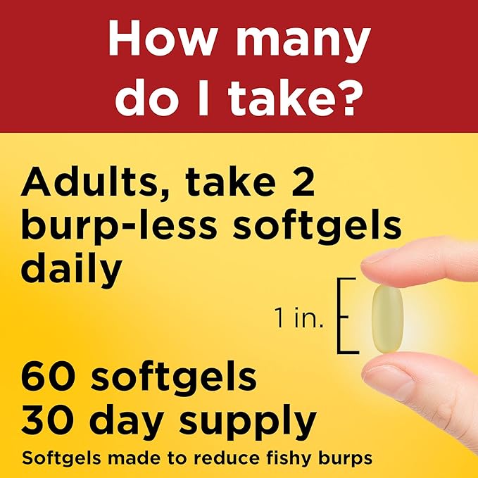 - Adults, take two of these Nature Made Omega 3 Fish Oil (1) softgels daily with water and a meal for optimal absorption