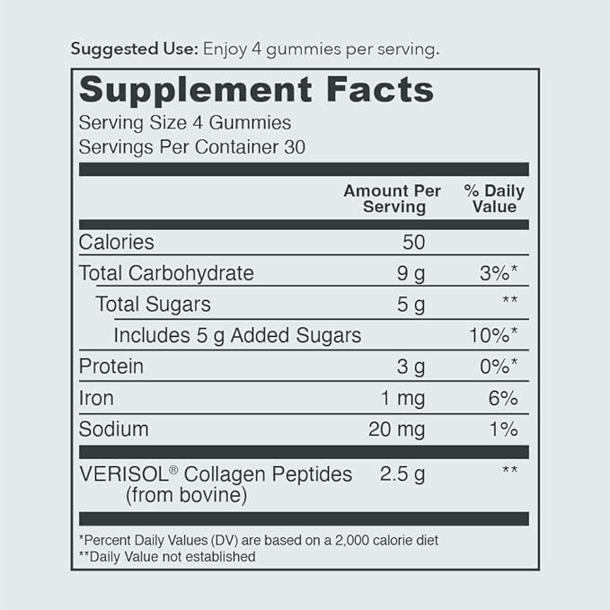 - Clinically Tested Dose --- Vital Proteins Collagen Gummies is a supplement featuring a clinically-tested dose of collagen that reduces fine lines and wrinkles, supports hair and nails, and increases skin elasticity.**