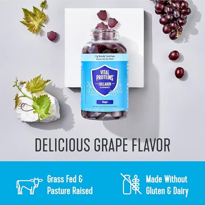 Vital Proteins Collagen Gummies, 2.5g of Clinically-Tested Collagen for Hair, Skin, Nails & Wrinkles, 120 ct, 30-Day Supply, Grape Flavor