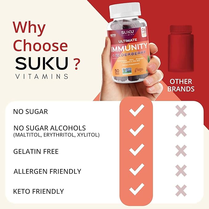 - Easy to Take Nutrients - No more drips and spills with Suku Vitamins’ immunity gummies! Up your health advantage by making our keto-friendly, vegetarian vitamins part of your daily habit!