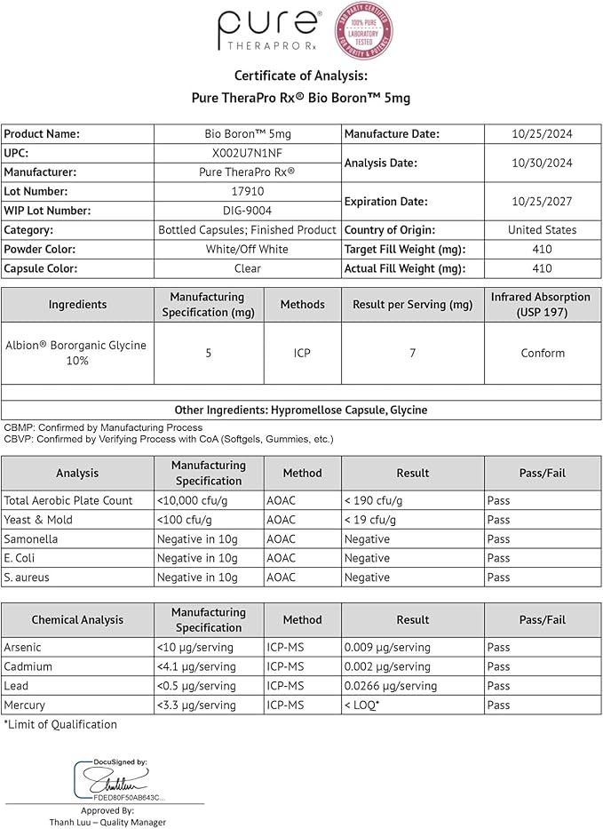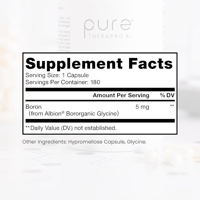 - ππππππ ππππππππππππ: Boron can be challenging for the body to absorb. However, Pure TheraPro Rx Bio Boron contains Albion's Bororganic Glycinate that optimizes absorption and bioavailability, ensuring effective supplementation. Boron is an essential nutrient necessary for optimal health. Our Boron supplement for women and men supports optimal bone metabolism, immunity, and nervous system health.
