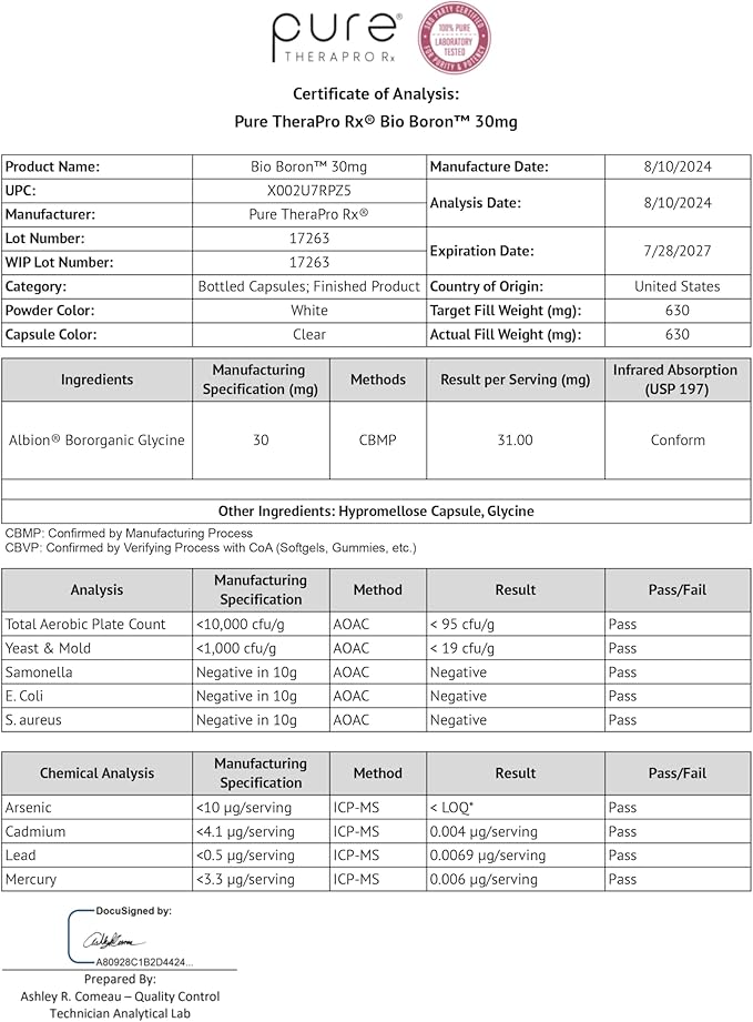 - ππππππ ππππππππππππ: Boron can be challenging for the body to absorb. However, Pure TheraPro Rx Bio Boron contains Albion's Bororganic Glycinate that optimizes absorption and bioavailability, ensuring effective supplementation. Boron is an essential nutrient necessary for optimal health. Our Boron supplement for women and men supports optimal bone metabolism, immunity, and nervous system health.