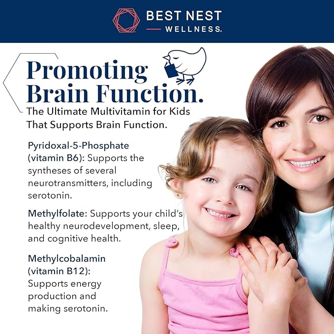 - Active Methylated Vitamins: Includes methylcobalamin and methylfolate to support your child's brain development and energy