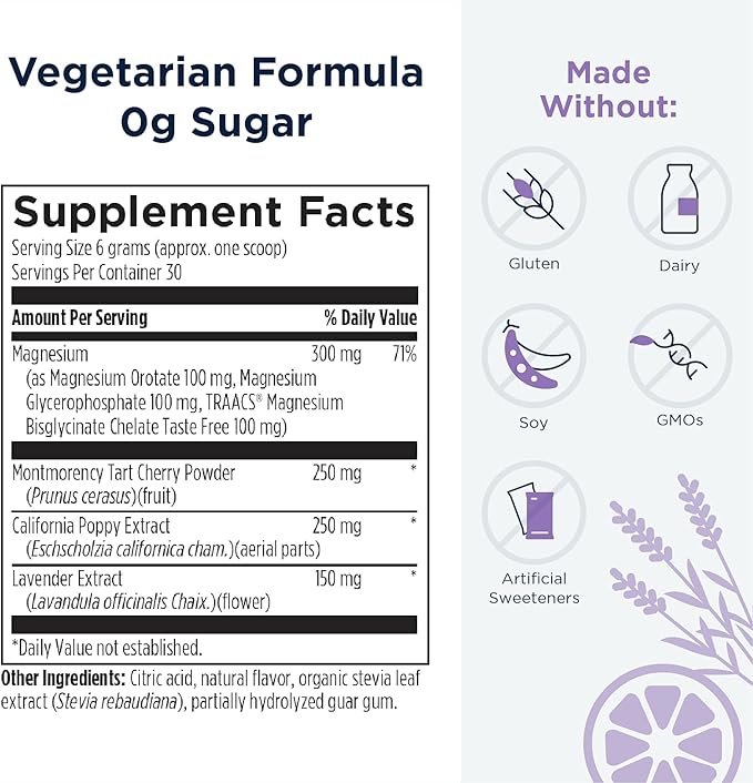 Designs for Health TriMag Supreme Powder Night - 300mg Magnesium Drink Supplement with Tart Cherry for Calm and Sleep - Lavender Lemon Flavor (30 Servings / 180g)