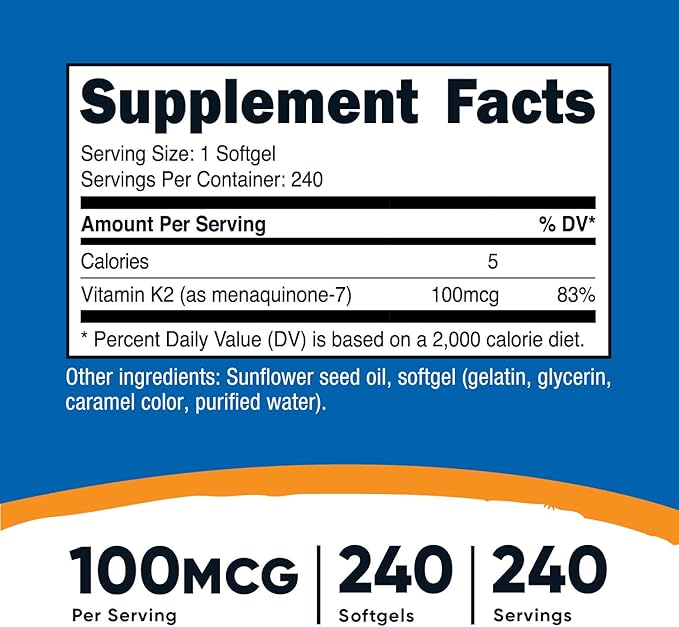 - 100mcg of Vitamin K2 in every serving - 1 Serving: Just 1 Softgel