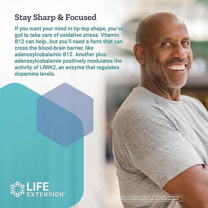 - STAY SHARP & FOCUSED – If you want your mind in tip-top shape, you’ve got to take care of oxidative stress. Vitamin B12 can help...but you’ll need a form that can cross the blood-brain barrier, like adenosylcobalamin B12. Another plus: adenosylcobalaminpositively modulates the activity of LRRK2, an enzyme that regulates dopamine levels.