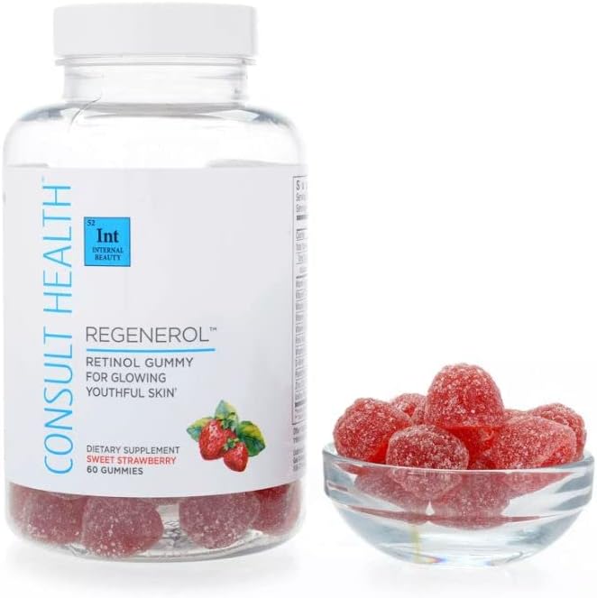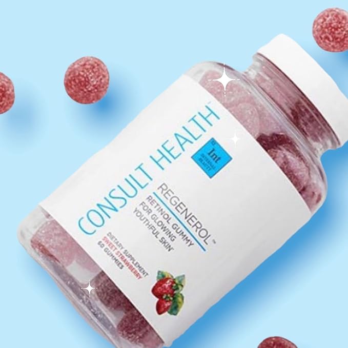 Consult Health Regenerol - Multivitamin Retinol Gummy - Anti-Aging Vitamin A Supplement - Glowing, Youthful & Clear Skin Strong Hair & Nails - Vitamin B6, B12, C,D3, Folic Acid, Zinc - 60 Gummies