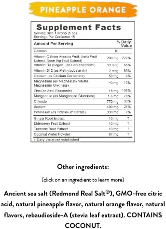 REDMOND Re-Lyte Immunity, Multivitamin Supplement Mix (Pinapple Orange)