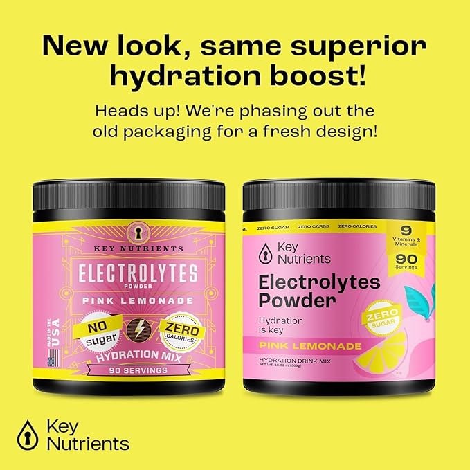 KEY NUTRIENTS Multivitamin Electrolytes Powder No Sugar - Fresh Pink Lemonade Electrolyte Powder - Endurance & Energy Supplement - Hydration Powder - No Calories - 90 Servings - Made in USA