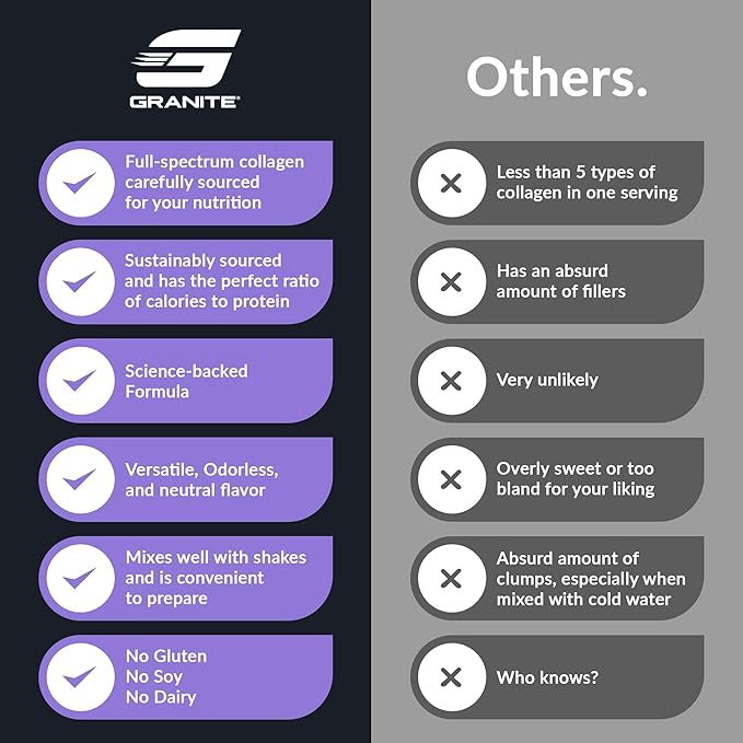 Granite Supplements Collagen Peptides Powder - Hair Skin and Nails Vitamins with Type I, II, III, V, X Hydrolyzed Collagen Peptides for Nail Growth, Bone, Joint Support Supplement for Mobility, 16oz