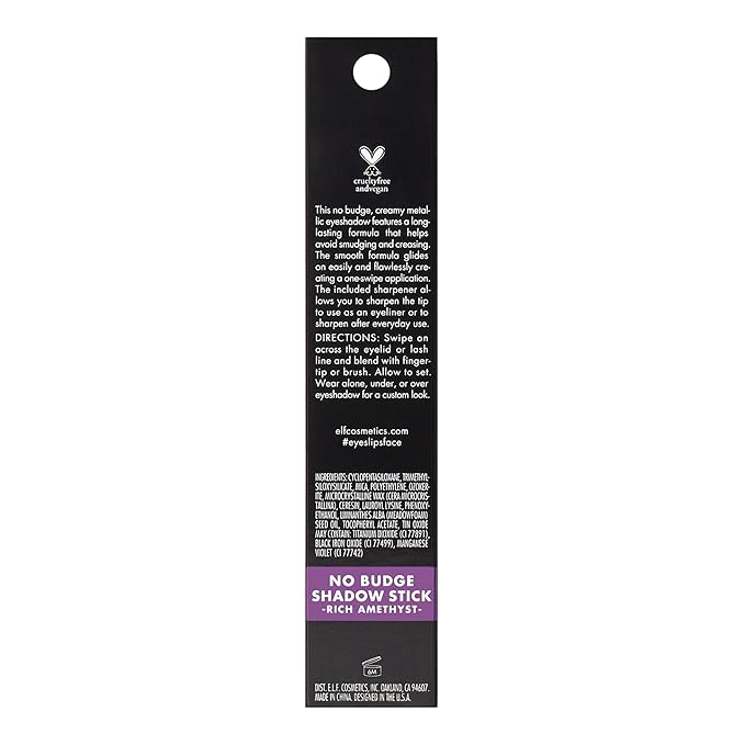 - HIGH-PIGMENT METALLIC EYESHADOW: The e.l.f. No Budge Shadow Stick is a versatile cream eyeshadow stick that delivers high-pigment, metallic colour with stay-put power.