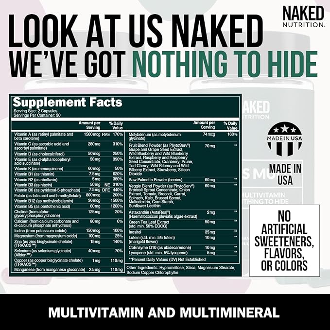 - MEN’S MULTIVITAMINS: Naked Men’s Multi is a carefully formulated, iron- free multivitamin supplement designed to cover dietary nutritional gaps and to help your body function optimally.