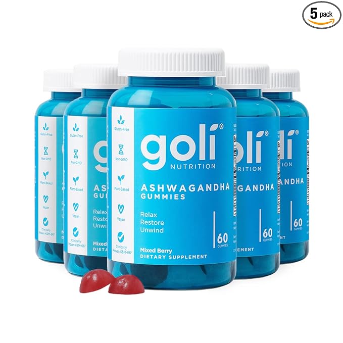 Goli Ashwagandha & Vitamin D Gummy - 300 Count - Mixed Berry, KSM-66, Vegan, Plant Based, Non-GMO, Gluten-Free & Gelatin Free Relax. Restore. Unwind, Pack of 5