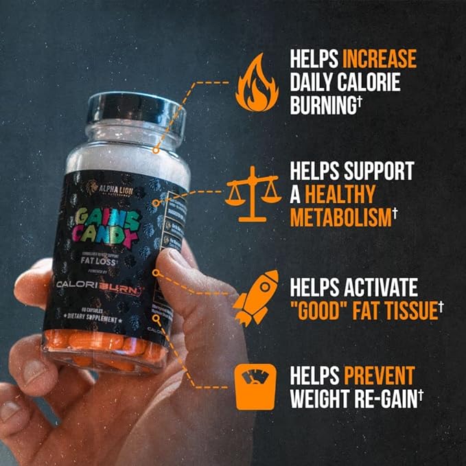- SUPPORTS FAT LOSS: Natural diet pills for women and men that will help with your weight loss and weight management goals. Gains Candy CaloriBurn will help enhance calorie burn during you workout, and can also help prevent weight re-gain, so all your diet & fitness efforts don't go to waste.