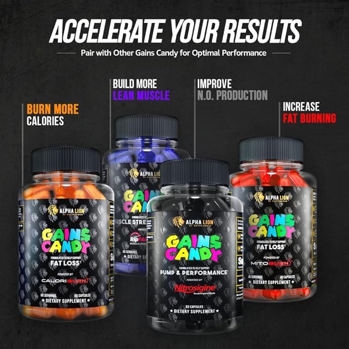 - CANDY GAINS: Alpha Lion's Candy Gains series forms unique products for women and men that can be customized to each individual's fitness, body, and health goals. From performance to fat loss, we have you covered with high quality effectively dosed products.