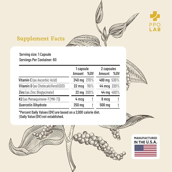 - Special Ingredients : Quercetin with Vitamin C and Zinc, D3, & K2 MK7