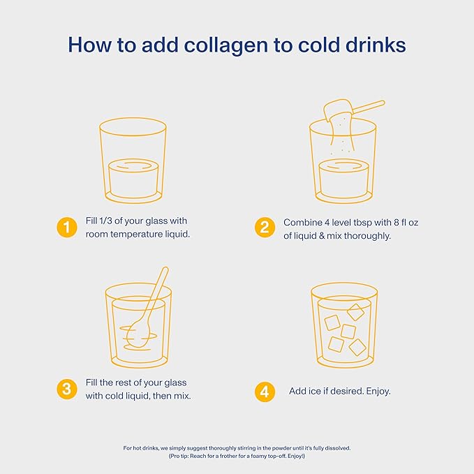 - Easy To Use ---- Vital Proteins Collagen Peptides is easily digested and dissolves in cold or hot liquids, like coffee, tea and smoothies. One to two scoops a day is all you need!