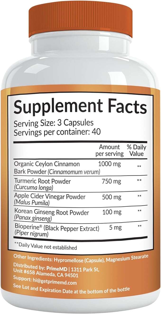 • What are the ingredients - Our vegan cinnamon capsules include apple cider vinegar, turmeric, Panax ginseng, ceylon cinnamon & BioPerine for more absorption. They're gluten free, GMO-free & 3rd party tested.