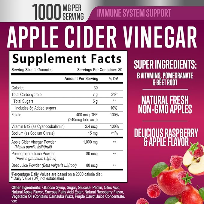 - Delicious and Nutritious: Enjoy the natural apple raspberry flavor of our ACV gummies, these gummies make your daily health routine a tasty feast without the strong vinegar taste