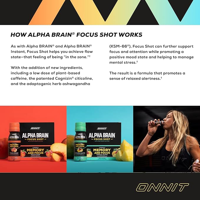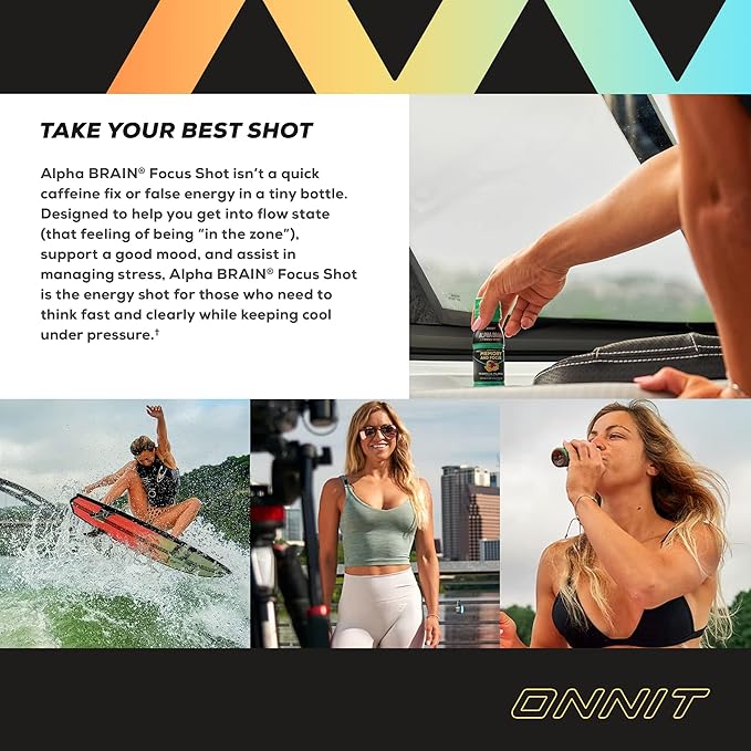 - Benefits of Onnit Alpha Brain Focus Shot - Helps balance daily stress, promotes focus and energy, and supports a positive mood state