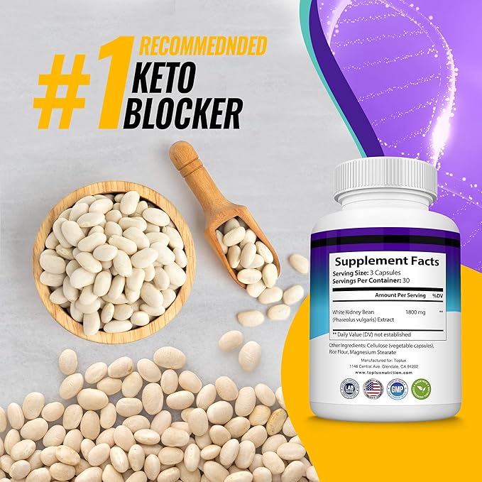Toplux Keto Blocker Pills White Kidney Bean Extract - 1800 mg Natural Ketosis, Support Keto Diet, for Men Women, 90 Capsules, Supplement