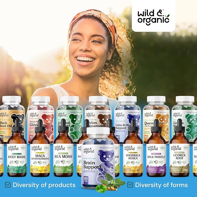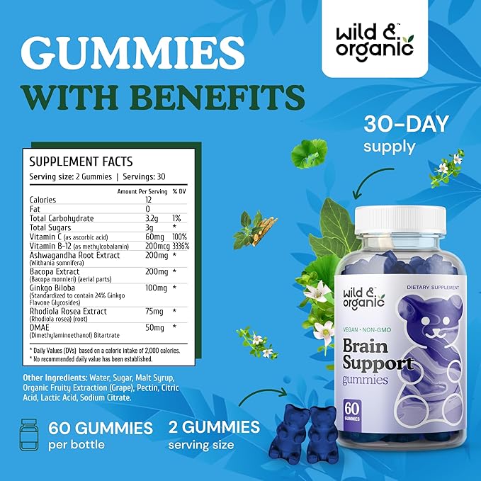 - Natural Formula: Wild & Organic brain gummies are made with vegan ingredients, free from GMOs, and contain no artificial colors.