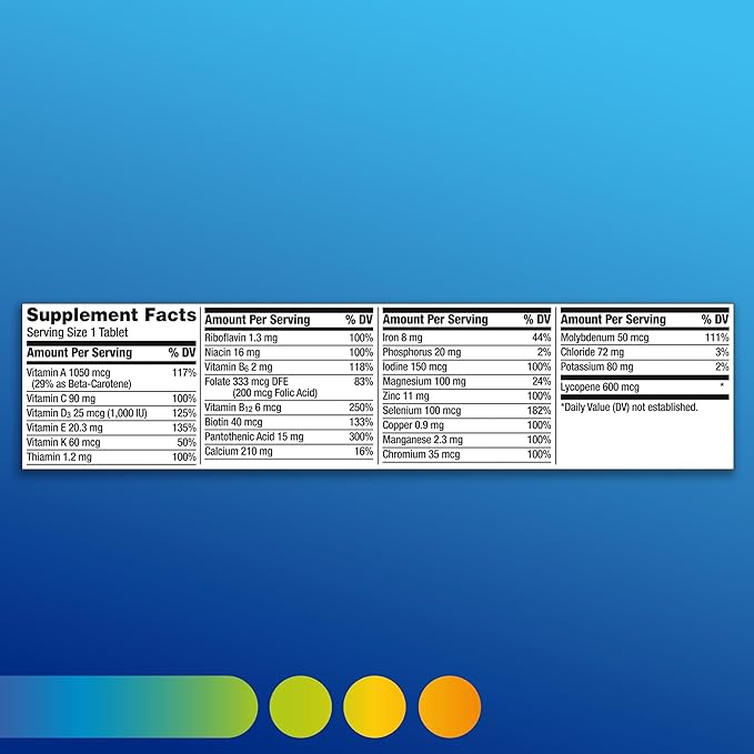 - Men's multivitamin features Vitamins C, E and Beta-Carotene and Zinc to provide immunity support, B Vitamins to support energy levels and metabolism, and Vitamin B6 and Vitamin D to support healthy muscle function (1)