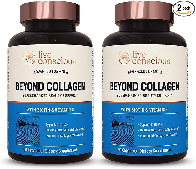 - HEALTHY SKIN, HAIR & NAIL SUPPORT: Live Conscious Beyond Collagen capsules offers 5 different types of collagen, plus biotin and vitamin C, in a convenient collagen supplement for women and men. By approaching healthy skin, hair and nail support from 5 angles, you can promote your body’s collagen levels, help you more efficiently use the collagen you have, and support the body’s natural collagen production.*