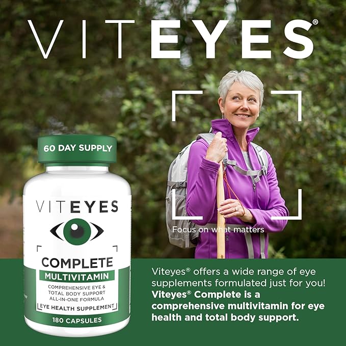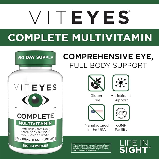 Viteyes Complete Eye & Total Body Health Multivitamin Nutritional Supplement, 180 Capsules, White