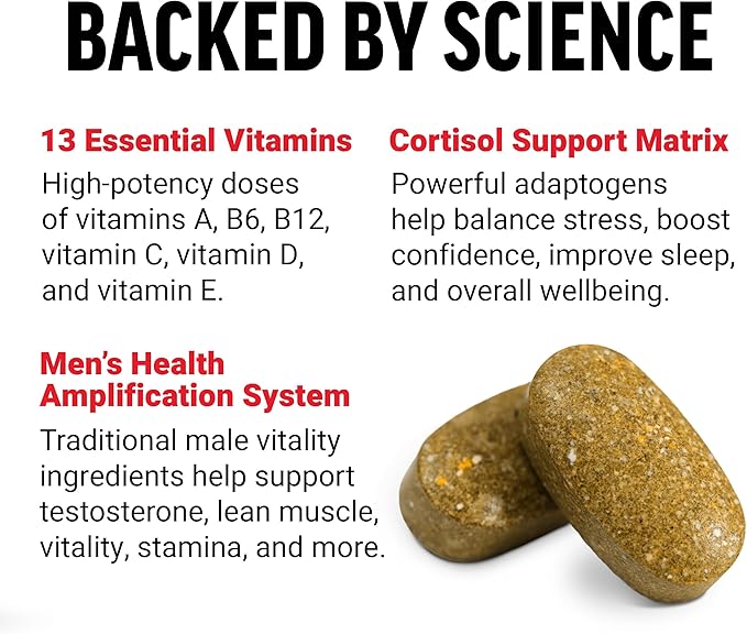 - RELIEVE STRESS & SLEEP BETTER: Loaded with premium, scientifically studied adaptogens, Test X180 Multivitamin not only supports healthy cortisol levels, but also helps relieve stress, fosters better sleep, and improves your sense of wellbeing.