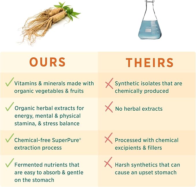 PURE SYNERGY Vita·Min·Vitality | Natural Multivitamin for Men | Men’s Daily Multivitamin Made with Organic Whole Foods | for Energy, Stress, and Immune Support (60 Tablets)